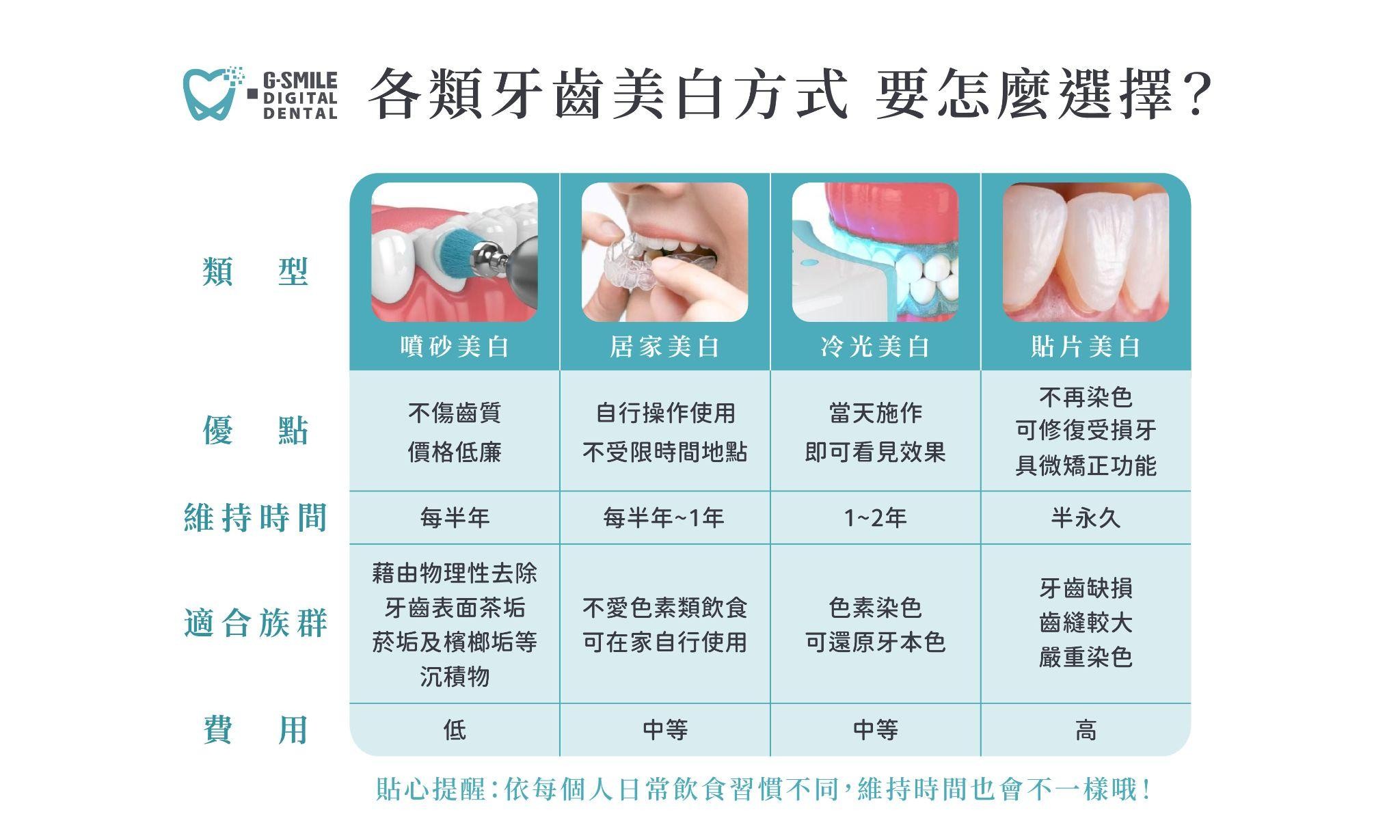 噴砂、居家、冷光及貼片美白,各類牙齒美白要怎麼選擇?
