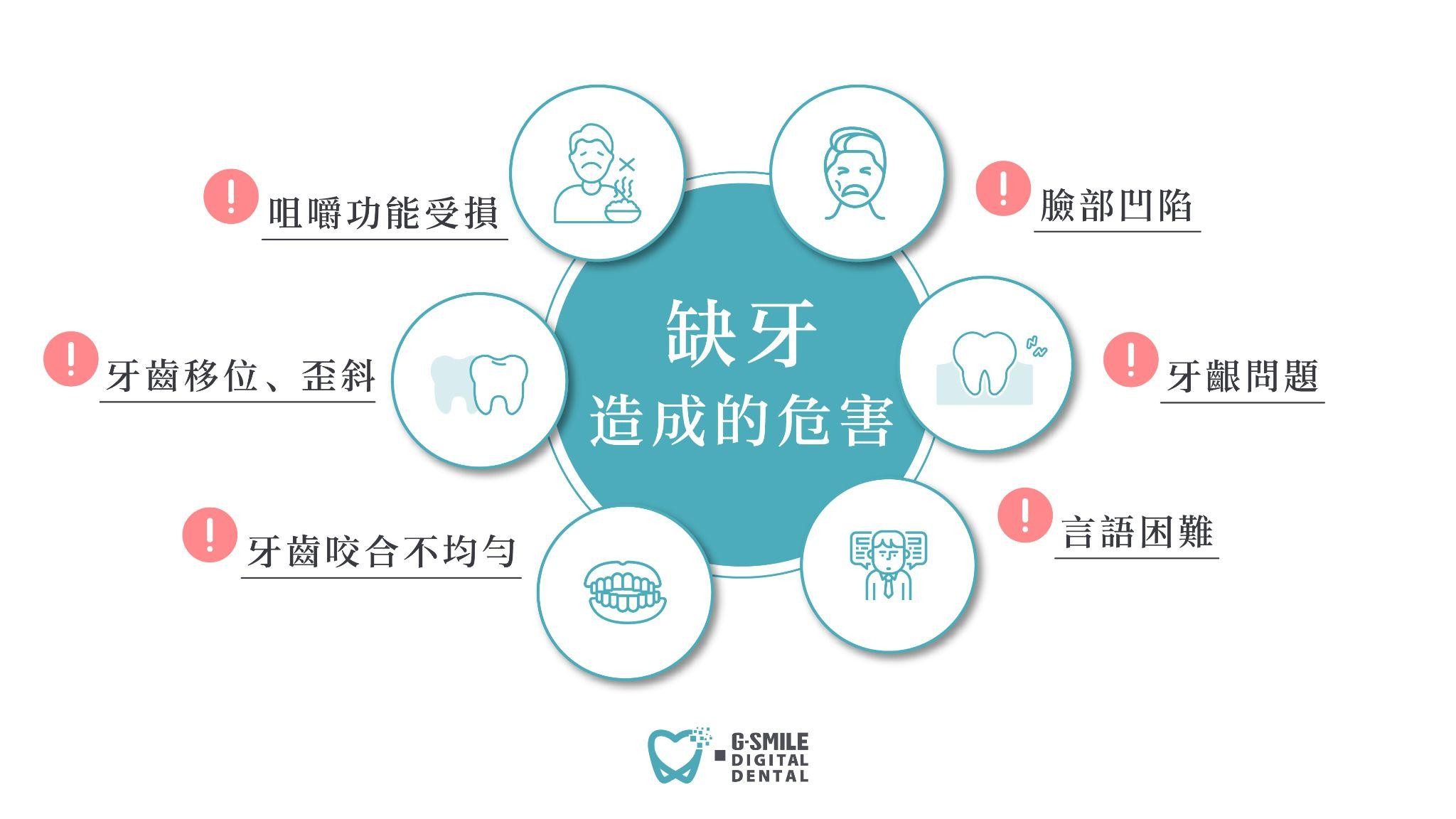 牙齒缺失可能影響言語發音和清晰度(講話漏風),尤其是一些特定的音。這可能導致言語困難和溝通障礙。