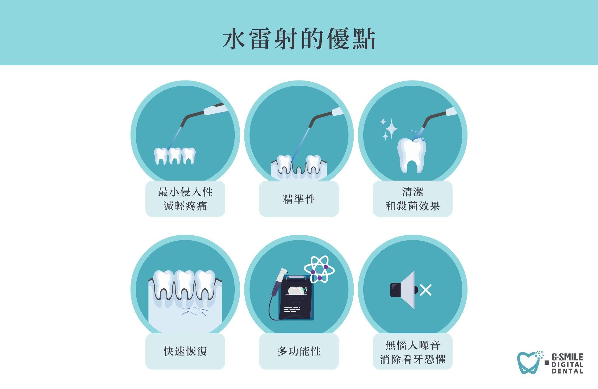 水雷射技術廣泛應用於不同的牙科治療領域,包括:牙周治療、植牙手術、根管治療、軟組織治療等,提供了多種治療選擇,增加治療的靈活性和效果。 - 無惱人的噪音療程: