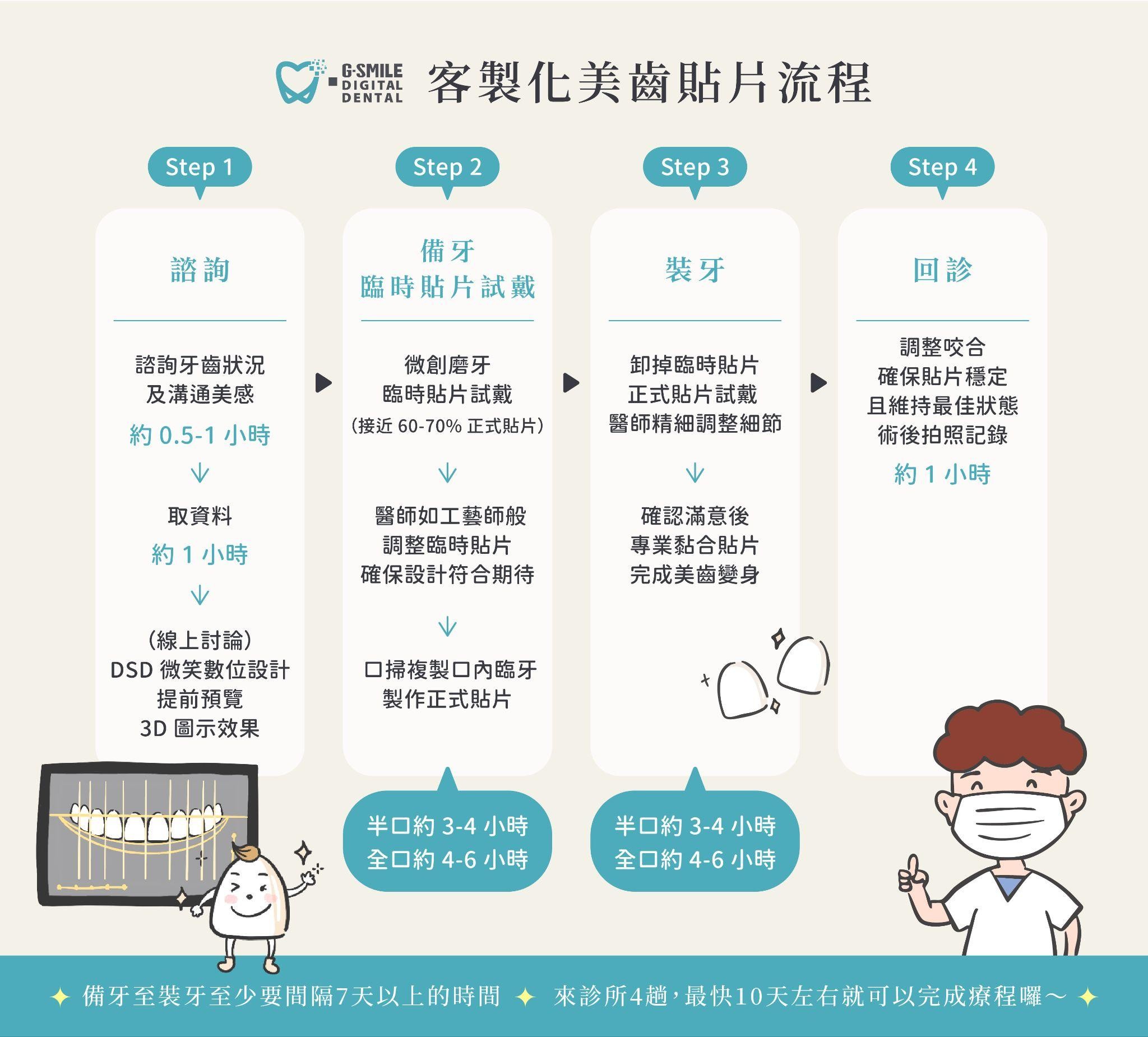 介紹了這麼多貼片的知識,您心動了嗎?那麼我們先來跟您分享美齒貼片製作流程及所須時間。